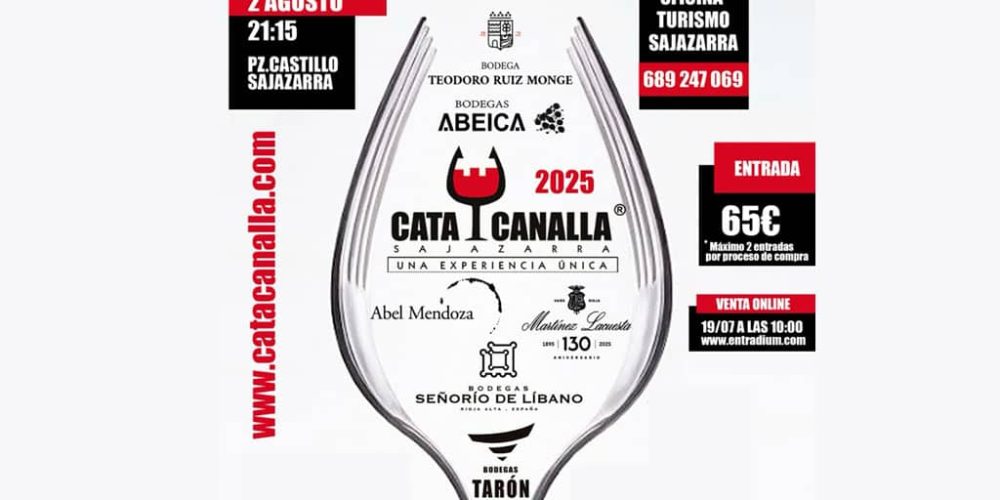 Bajo el cielo estrellado de Sajazarra, el próximo 2 de agosto a las 21:15 h, los sentidos se rinden ante una experiencia única: 6 vinos + 5 aperitivos + postre en un enclave que parece sacado de un cuento. La Cata Canalla, con el castillo del siglo XV como testigo y un acceso mágico por el callejón de Las Paredes Amantes, reunirá a 132 afortunados en una noche enológica que va mucho más allá de una simple cata: es una celebración de los sabores, el arte y la historia.