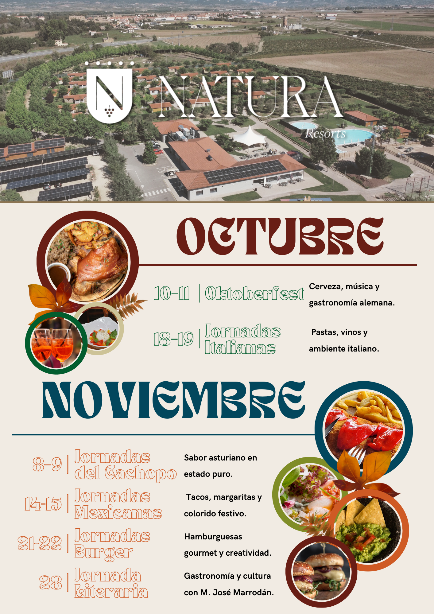 Durante el mes de noviembre, Natura Resorts organiza sus jornadas gastronómicas con menús especiales y temáticos a saborear en un entorno único de paisaje, relax y cocina de calidad. Más información aquí.